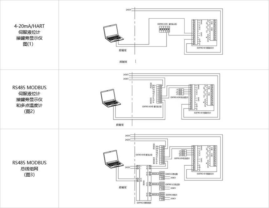 伺服液位計通信方式4-20mA/HART、RS485 MODBUS